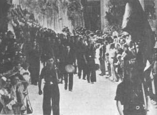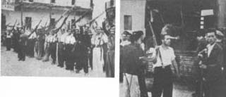 | Εθνικιστές στρατιώτες και δημοκρατικοί παίρνουν τα όπλα. Αλλά η πειθαρχία των νεαρών φαλαγγιτών (δεξιά), έρχεται σε αντίθεση με την αταξία της πολιτοφυλακής (αριστερά - αριστερή φωτογραφία) και ιδιαίτερα των αναρχικών (αριστερά- δεξιά φωτογραφία). | |